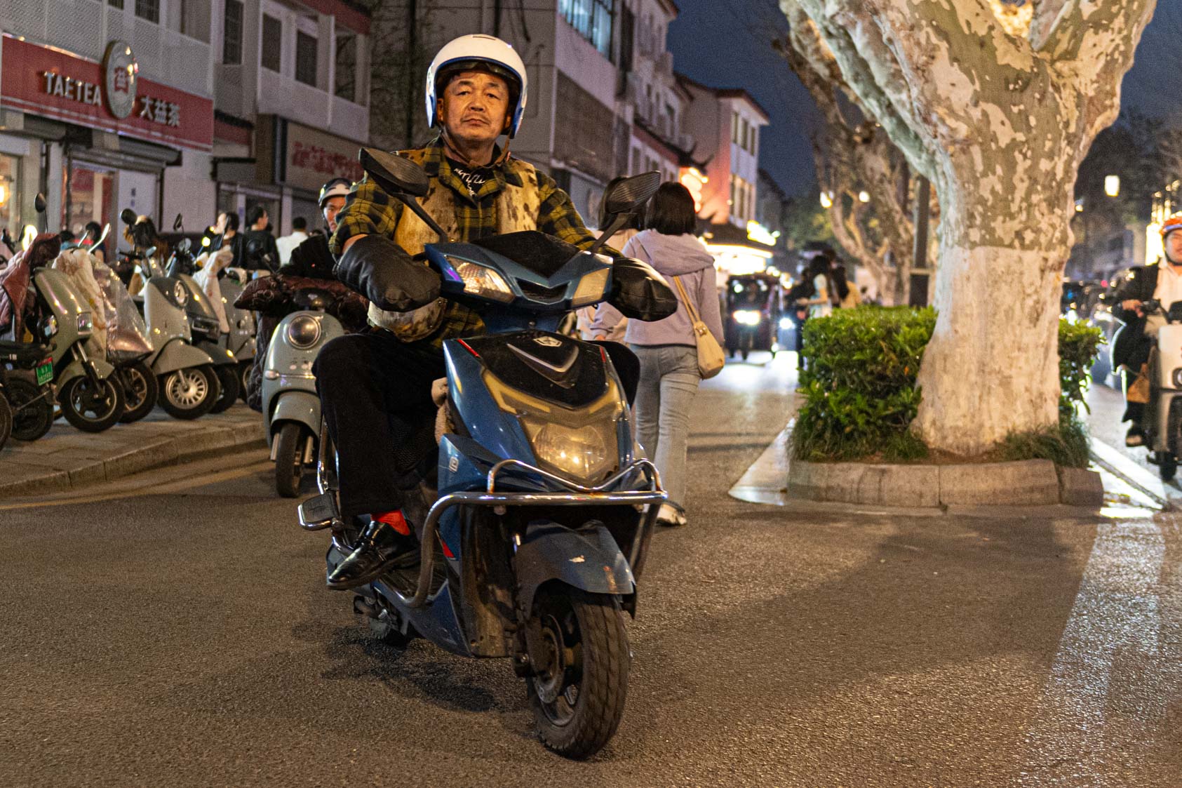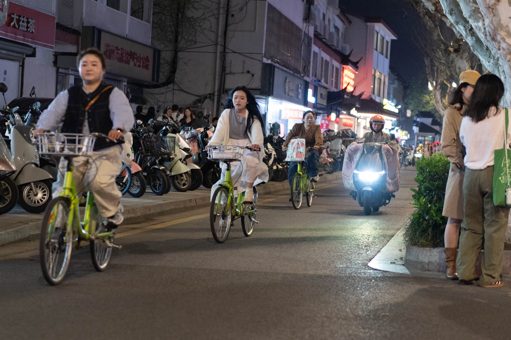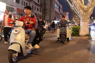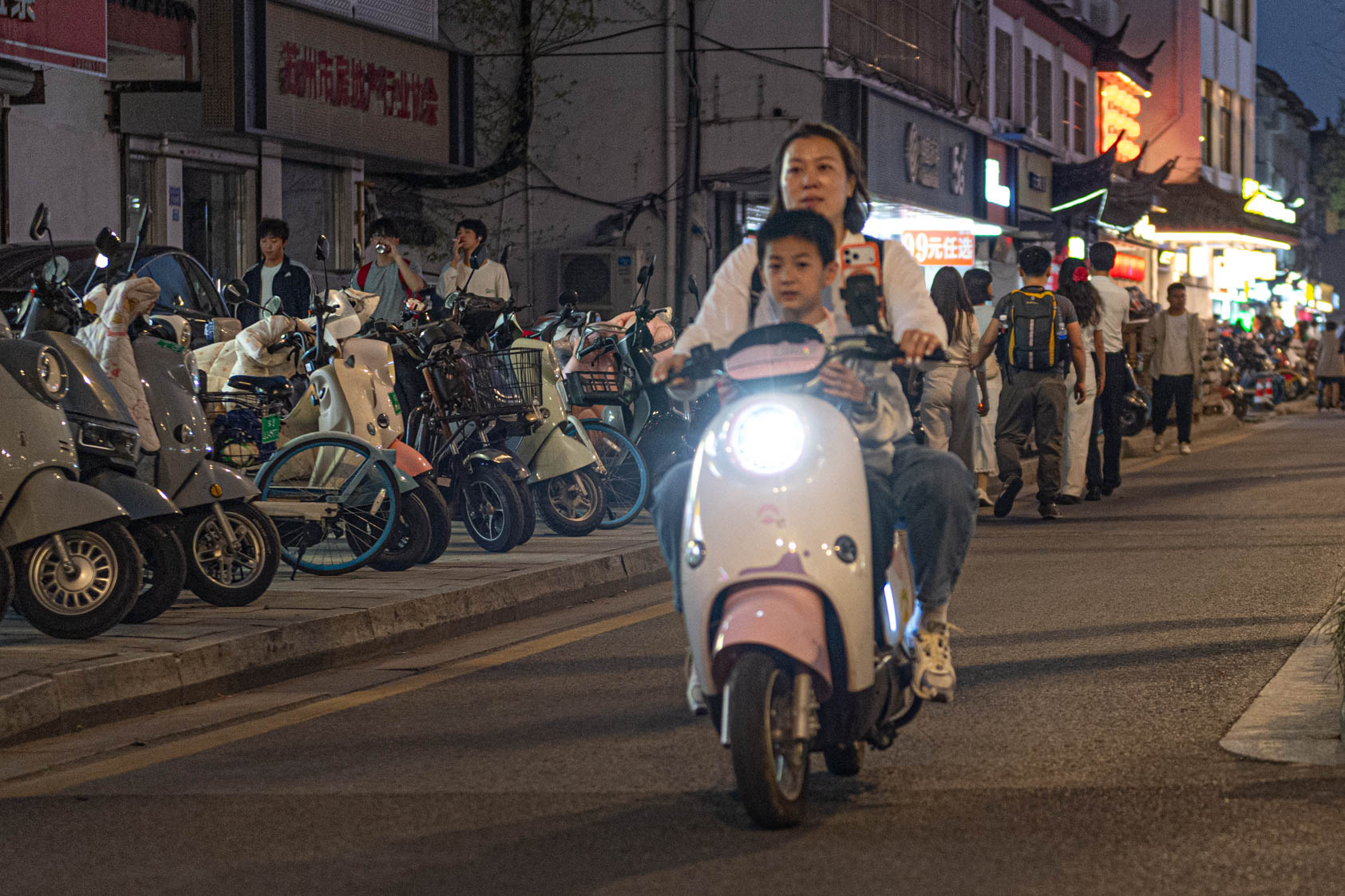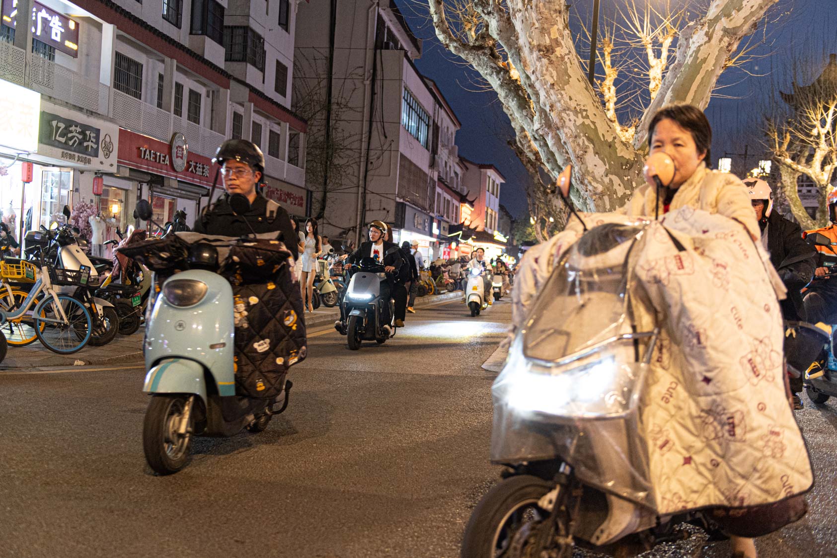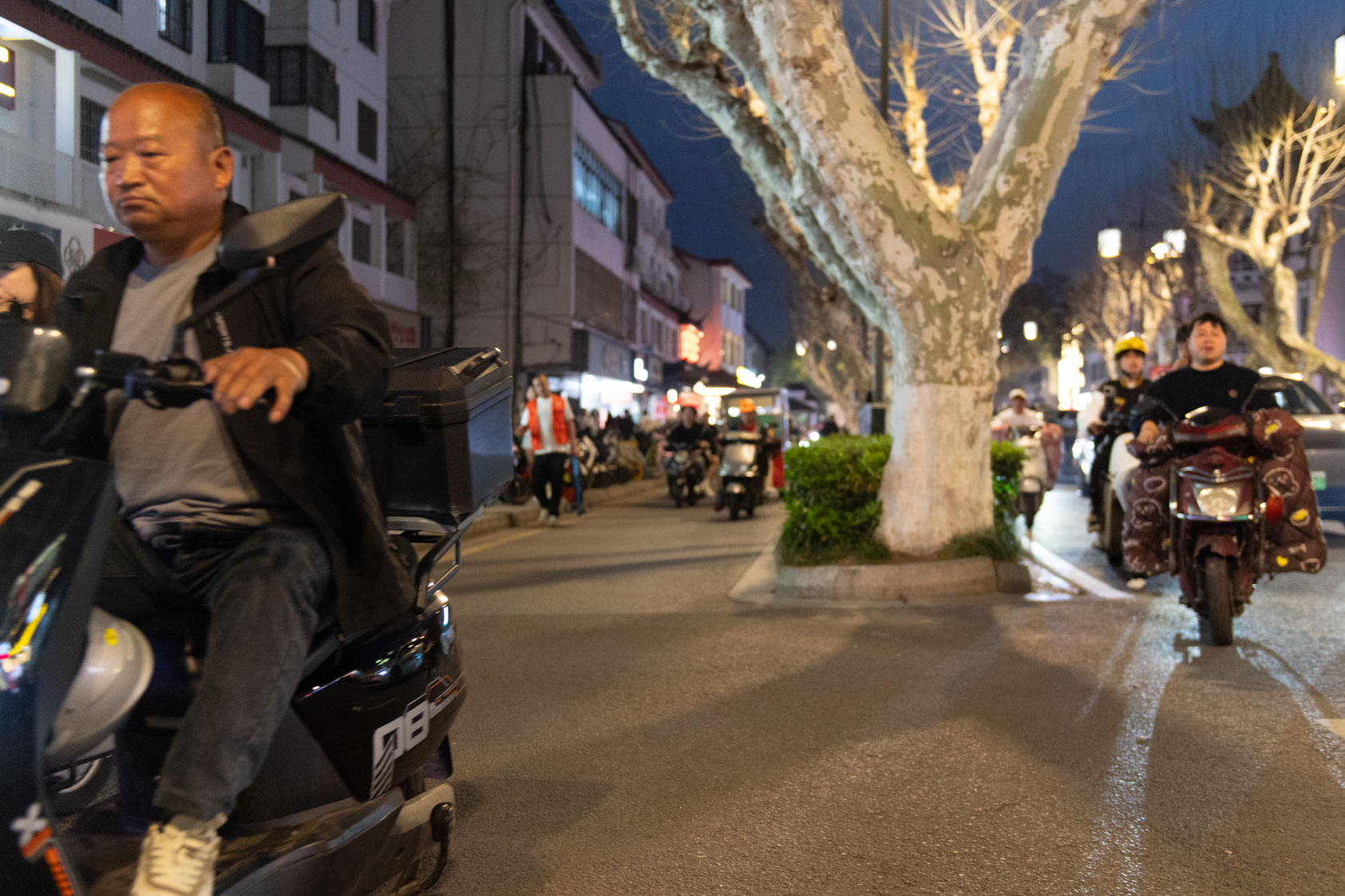 Scooters everywhere, Suzhou Night Market area street.