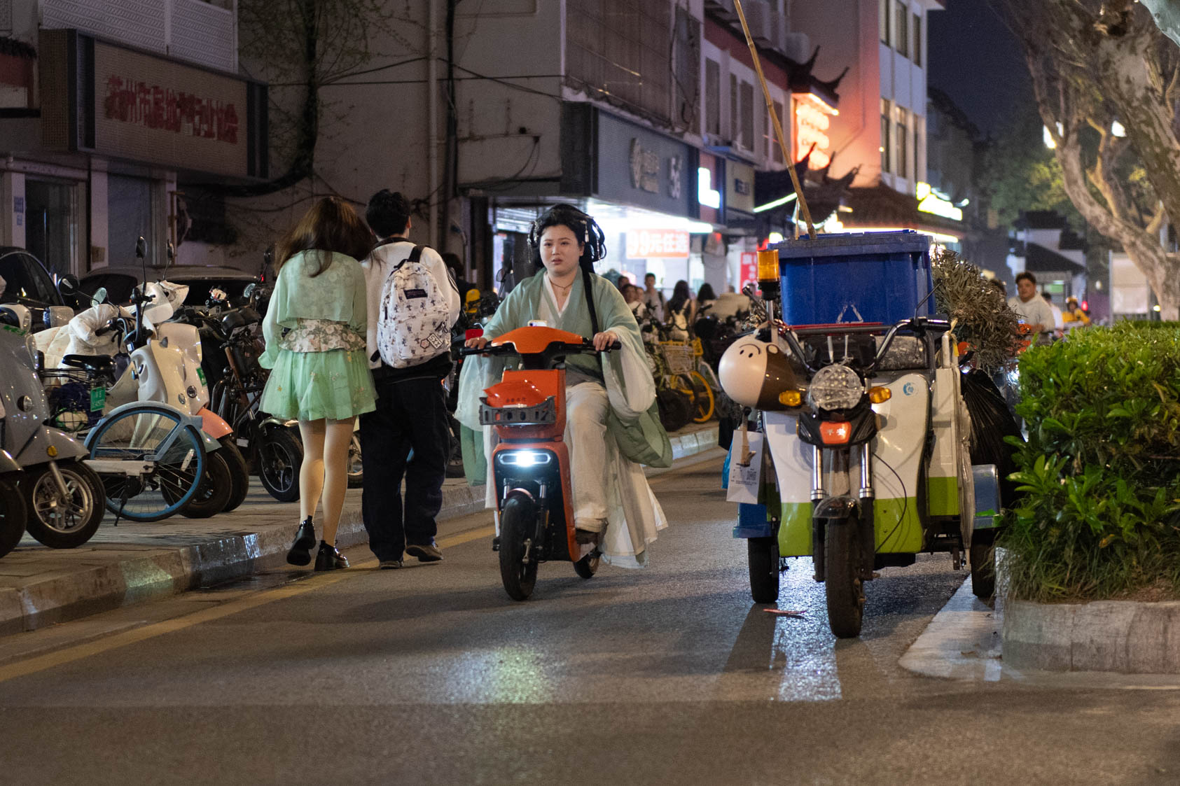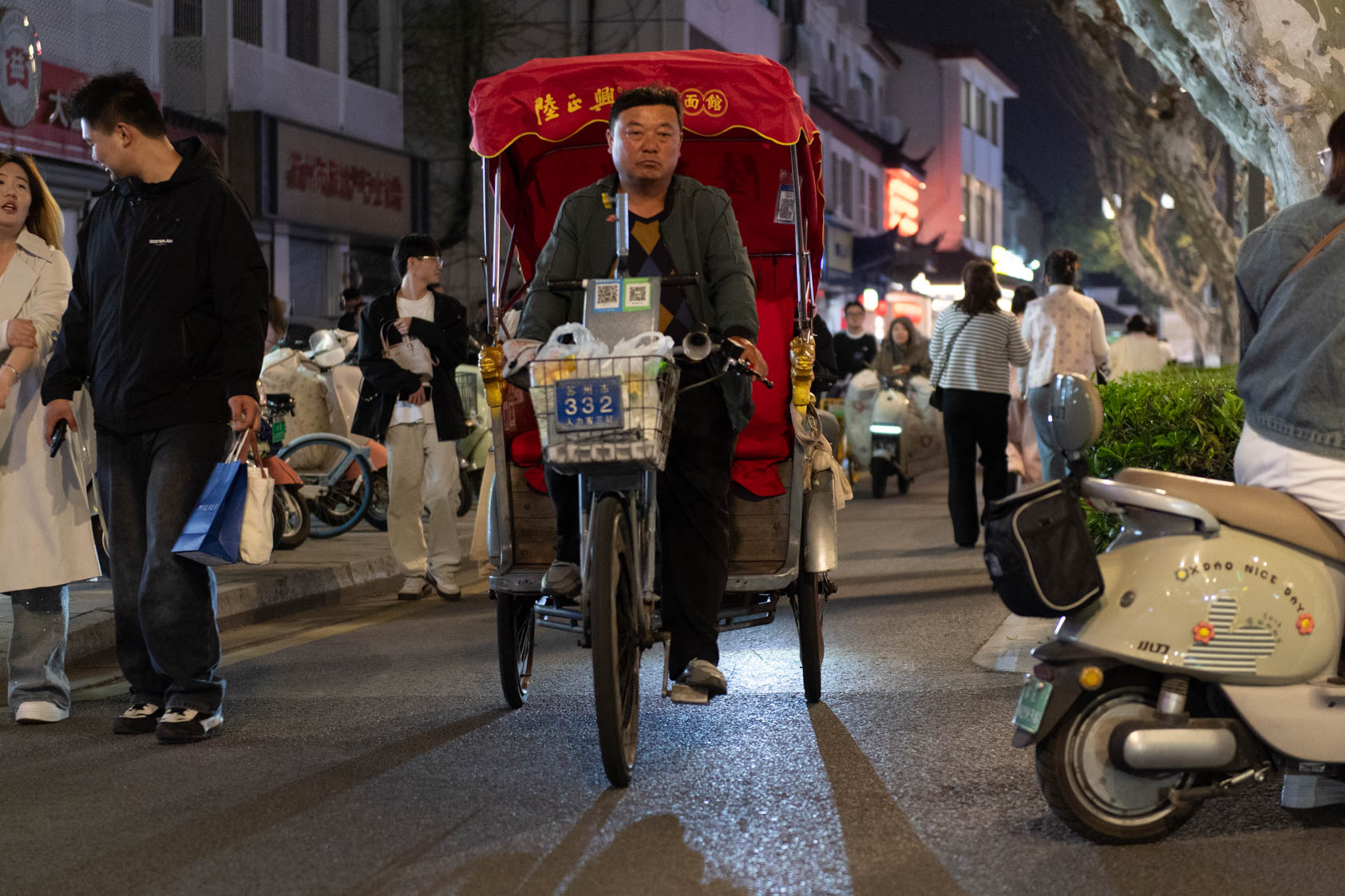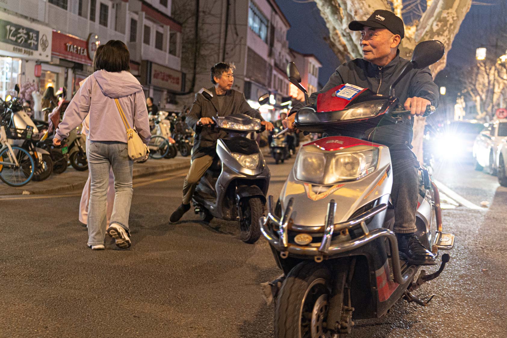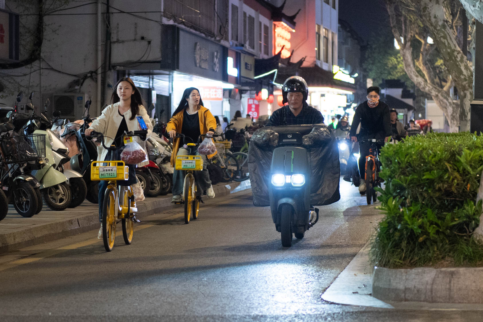 Scooters everywhere, Suzhou Night Market area street.