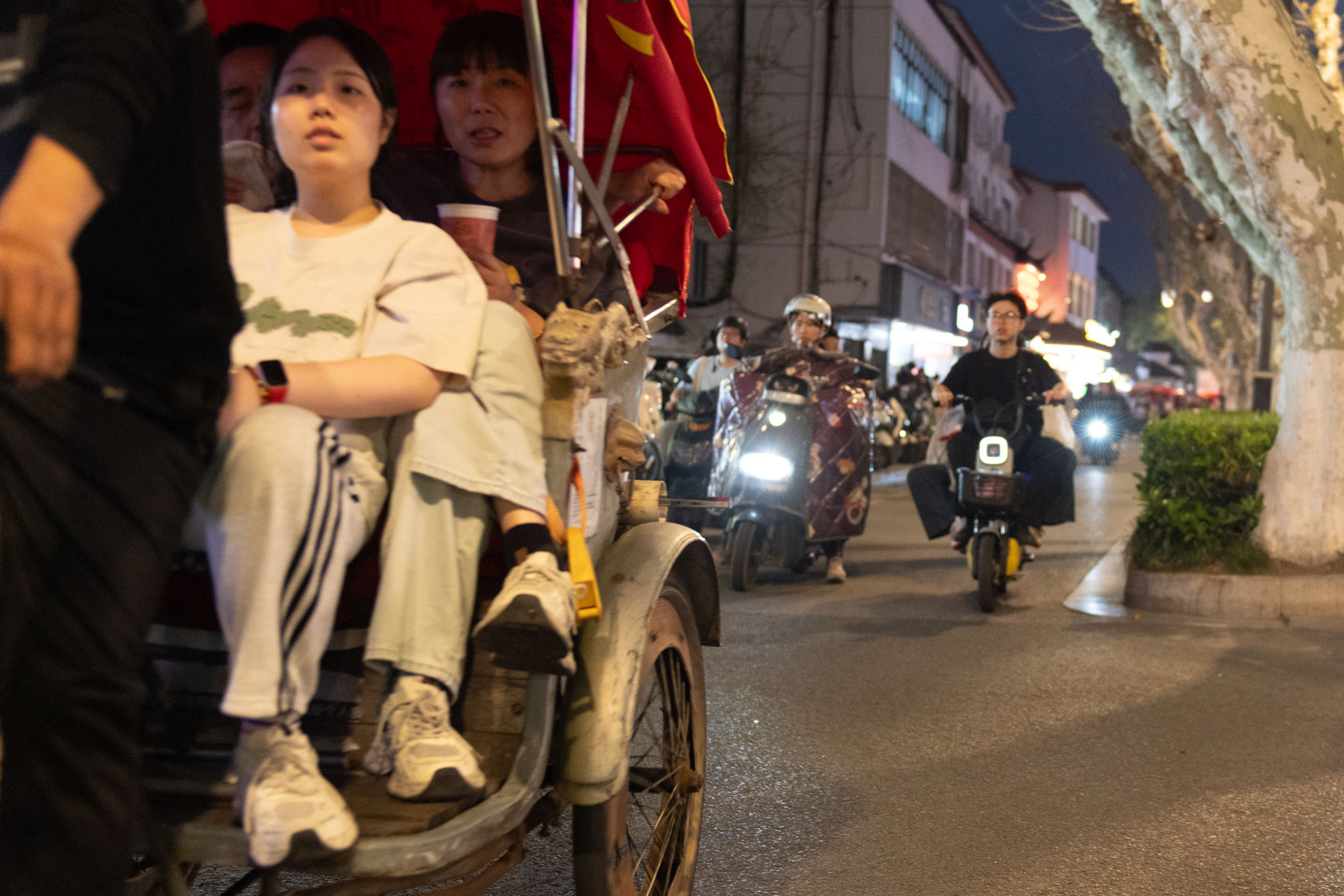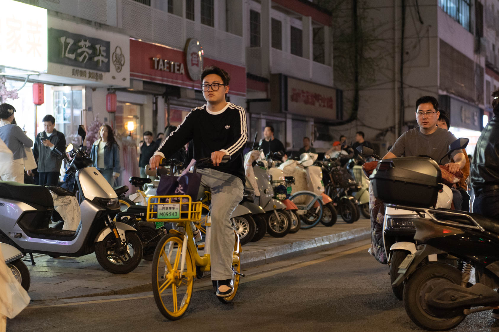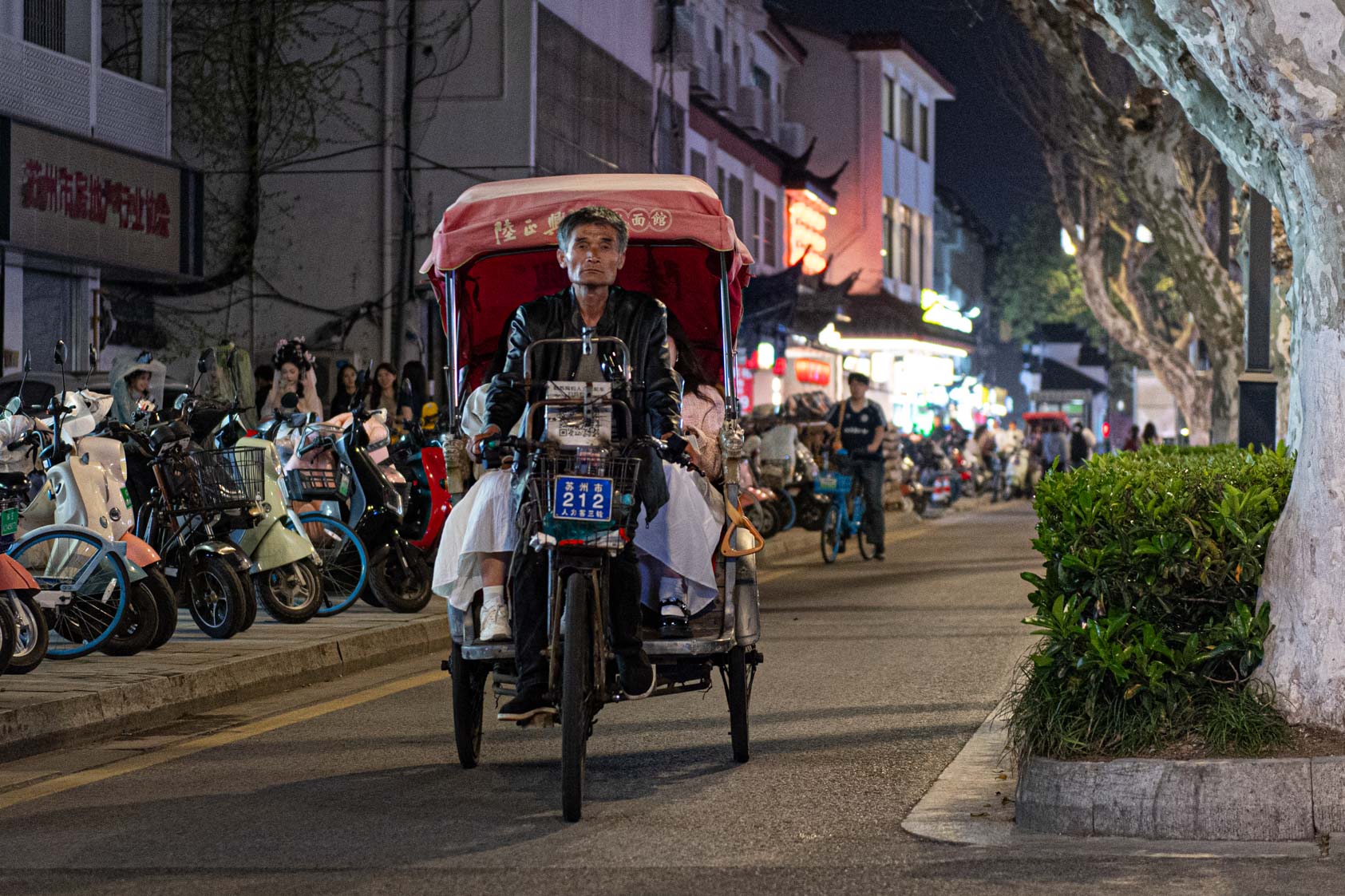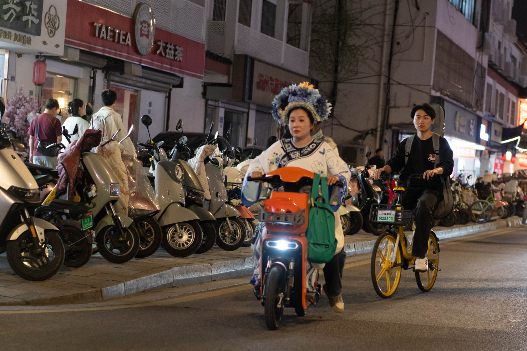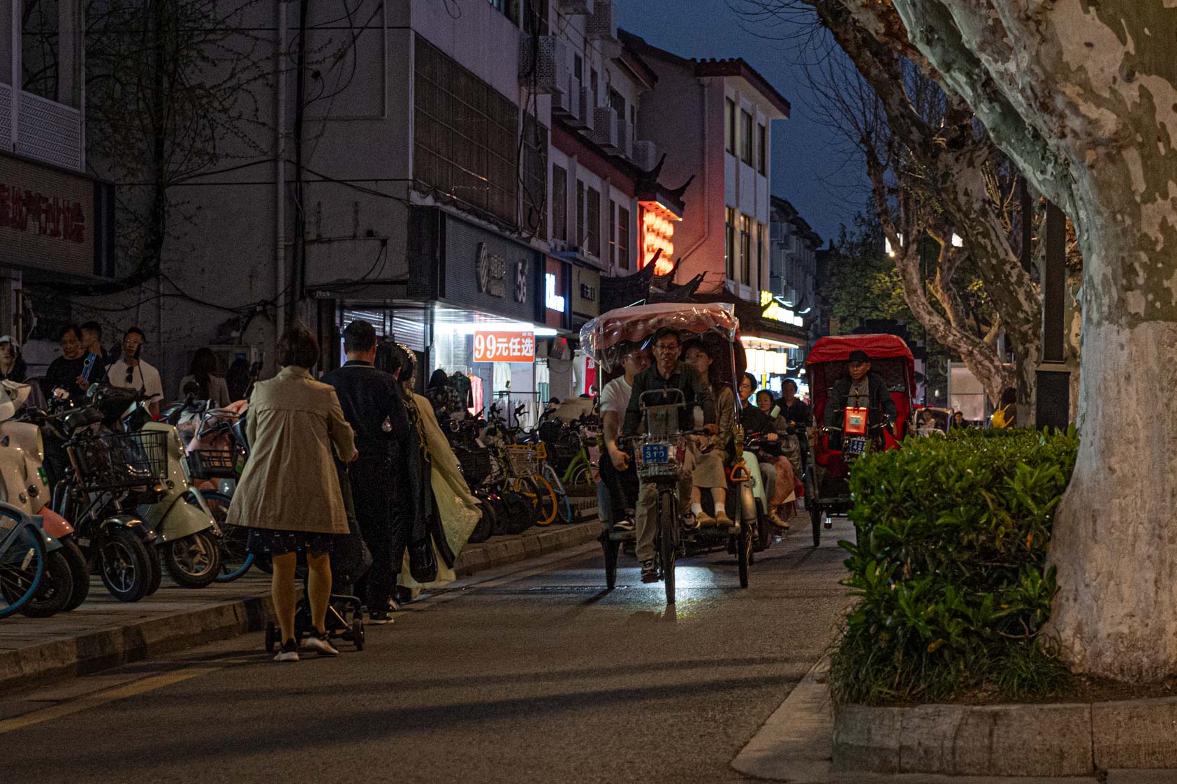 Scooters everywhere, Suzhou Night Market area street.