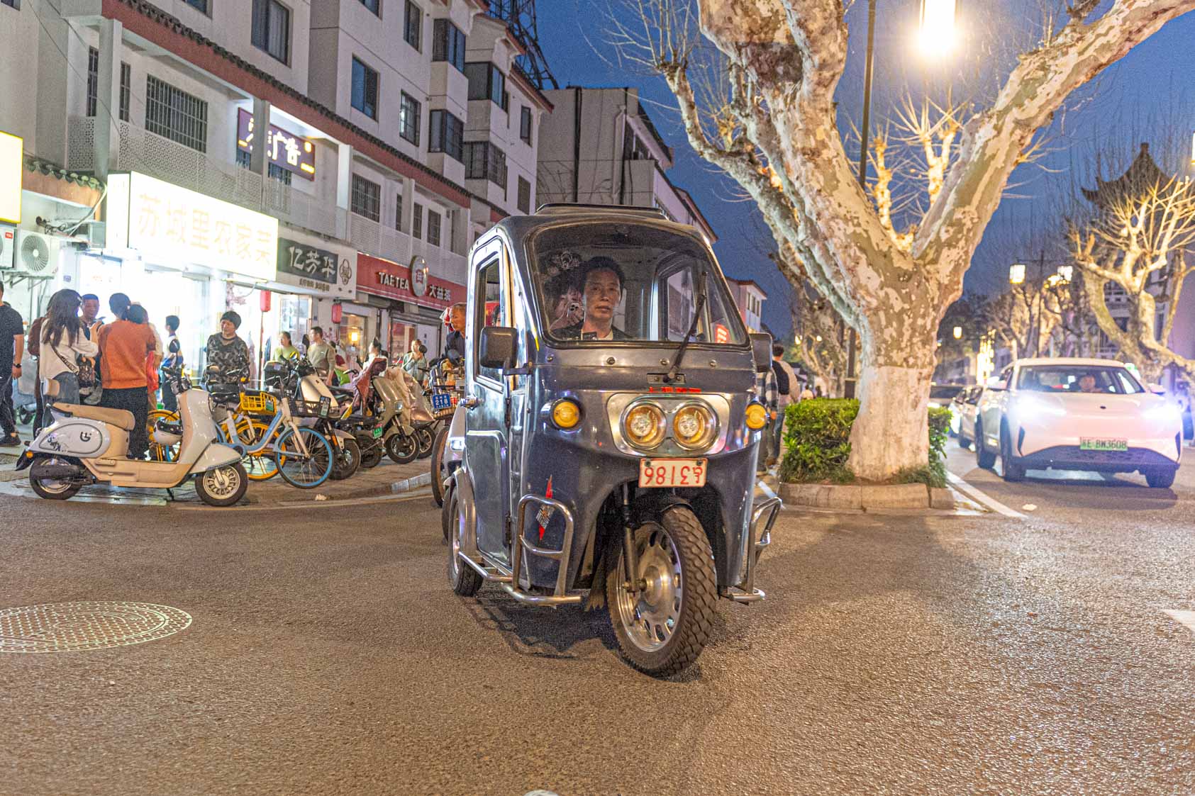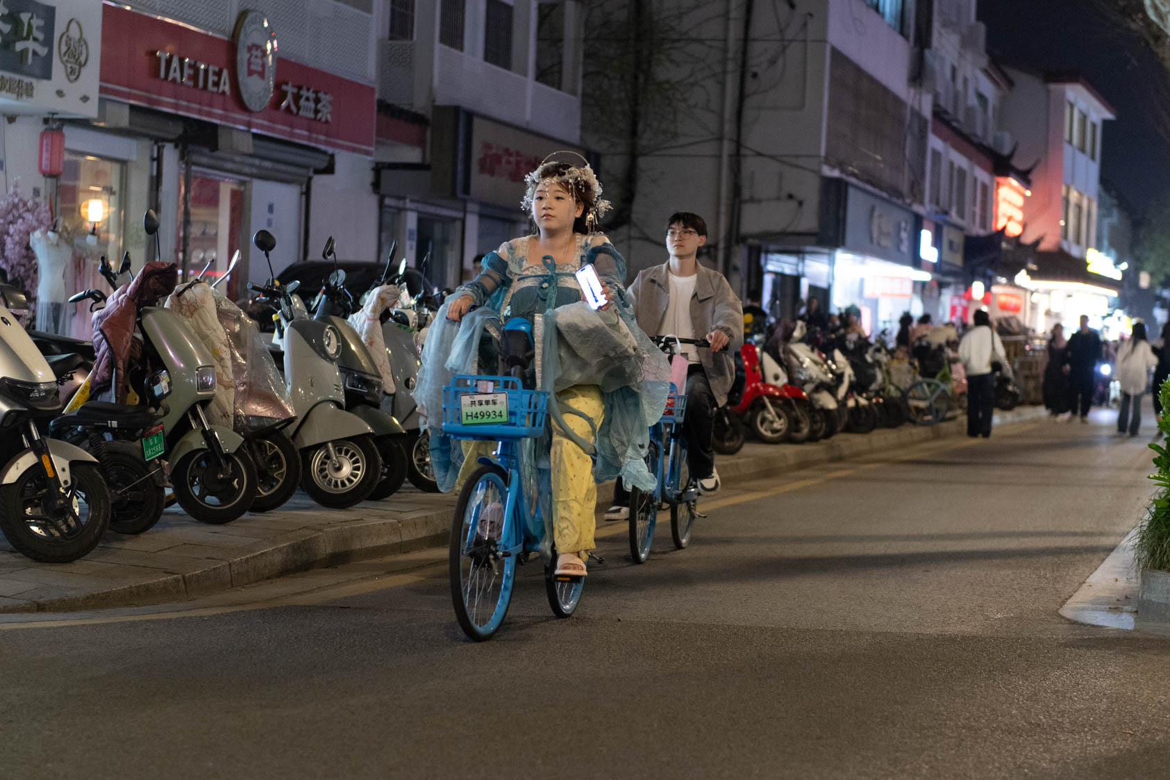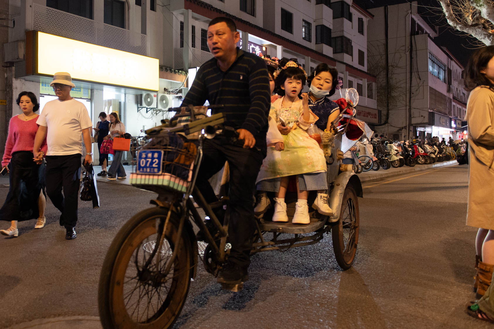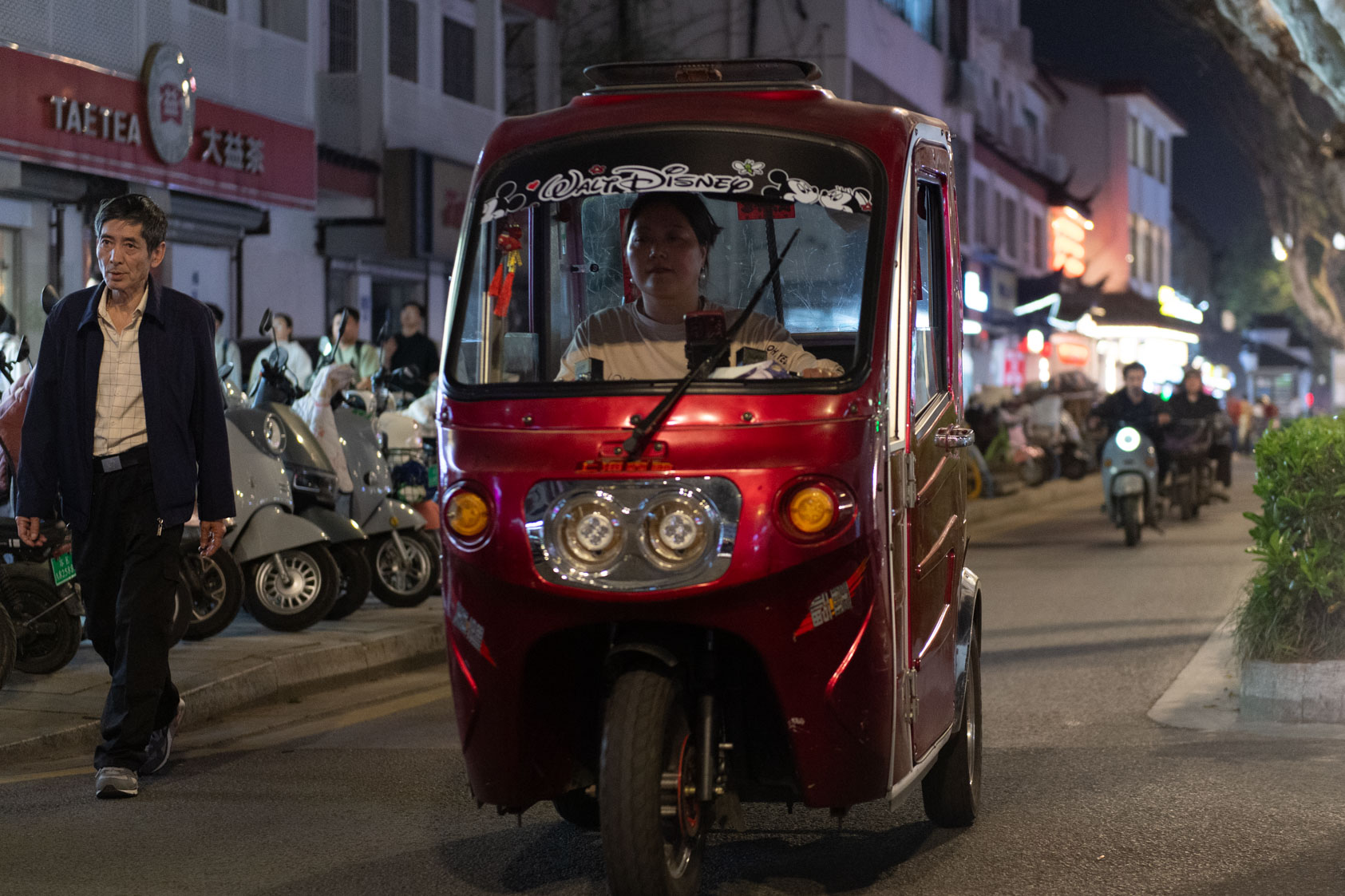 Scooters everywhere, Suzhou Night Market area street.