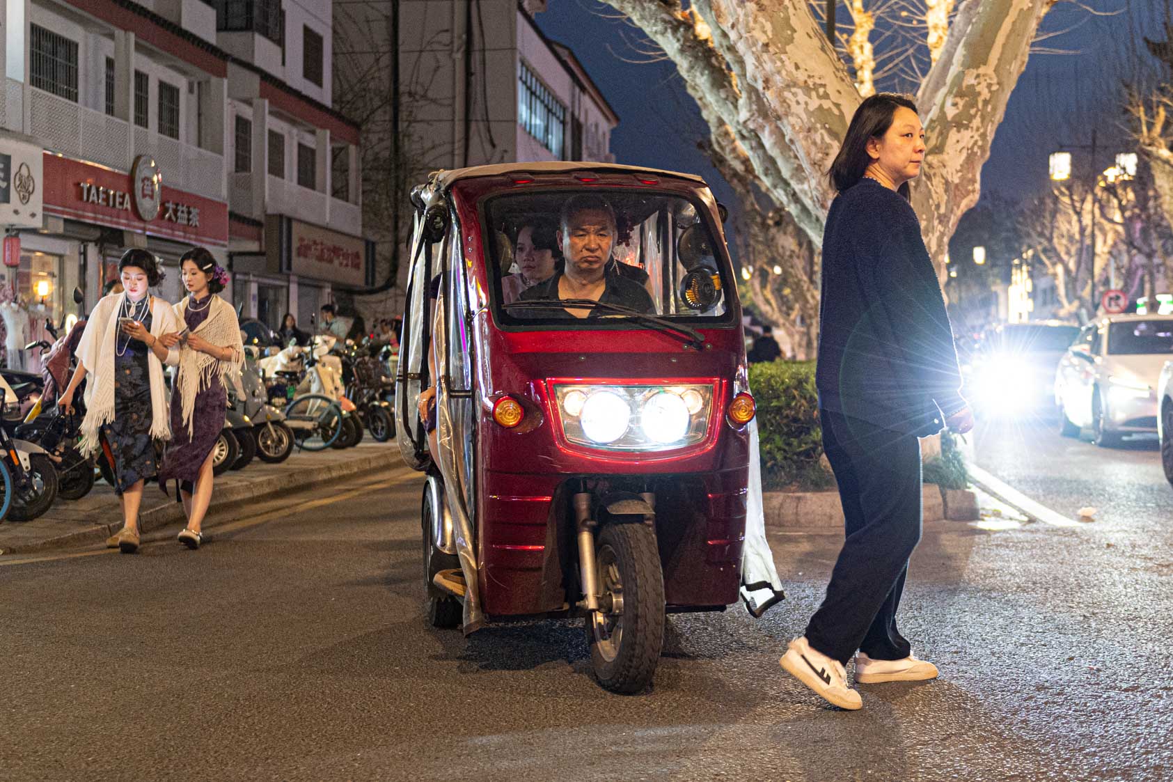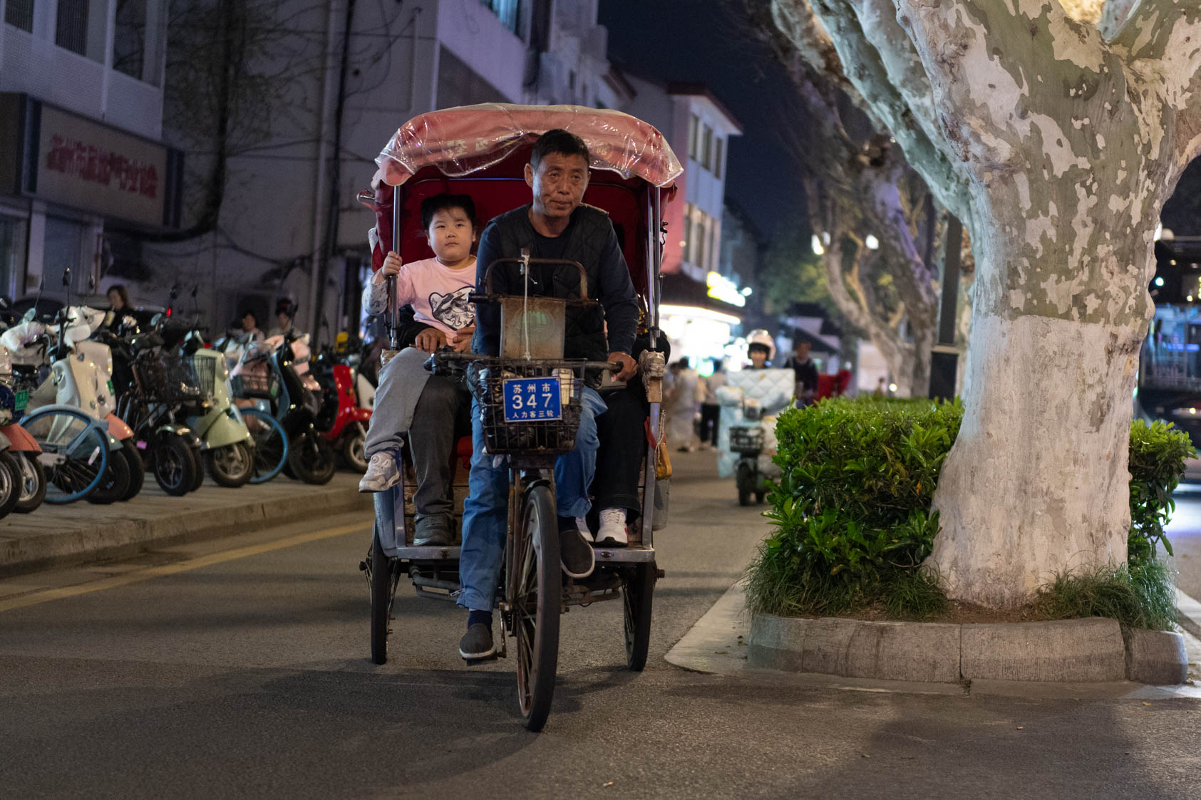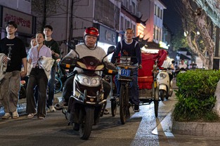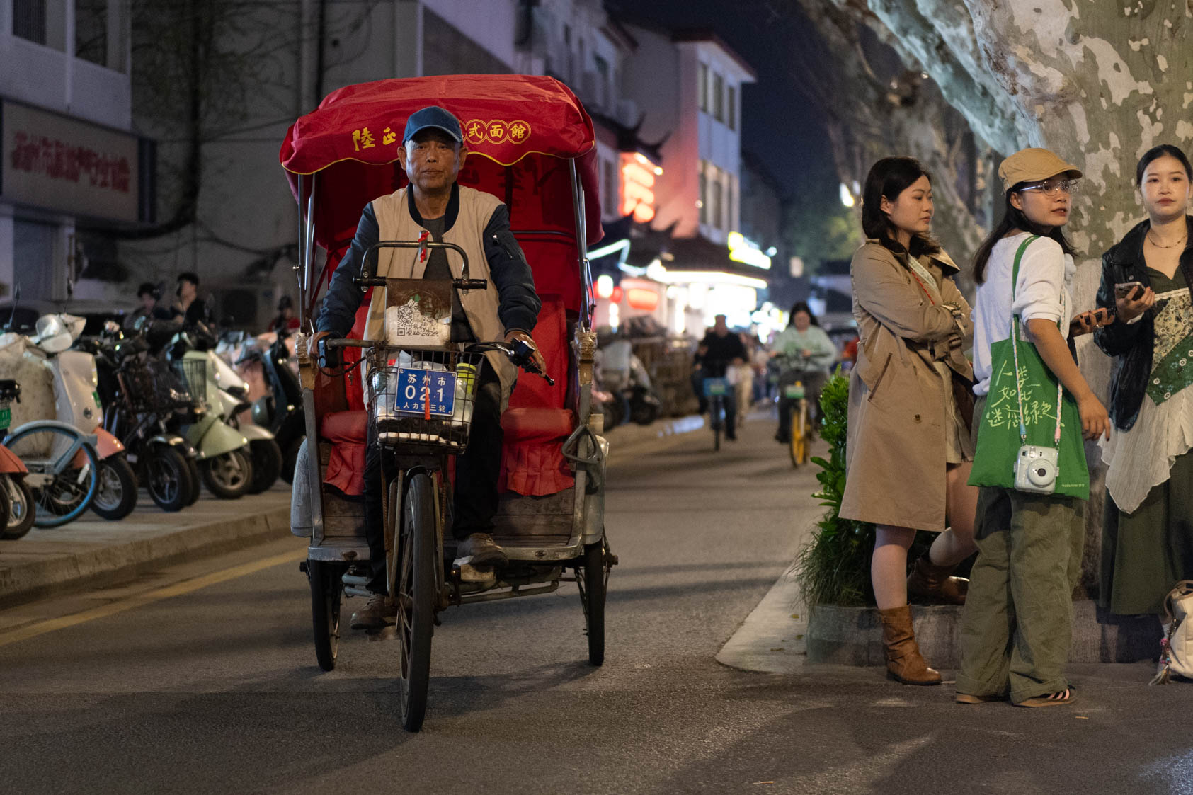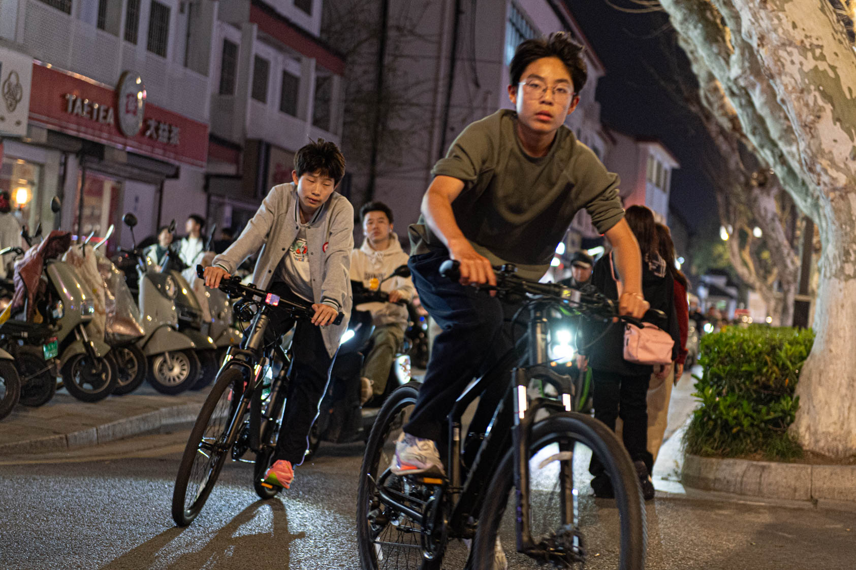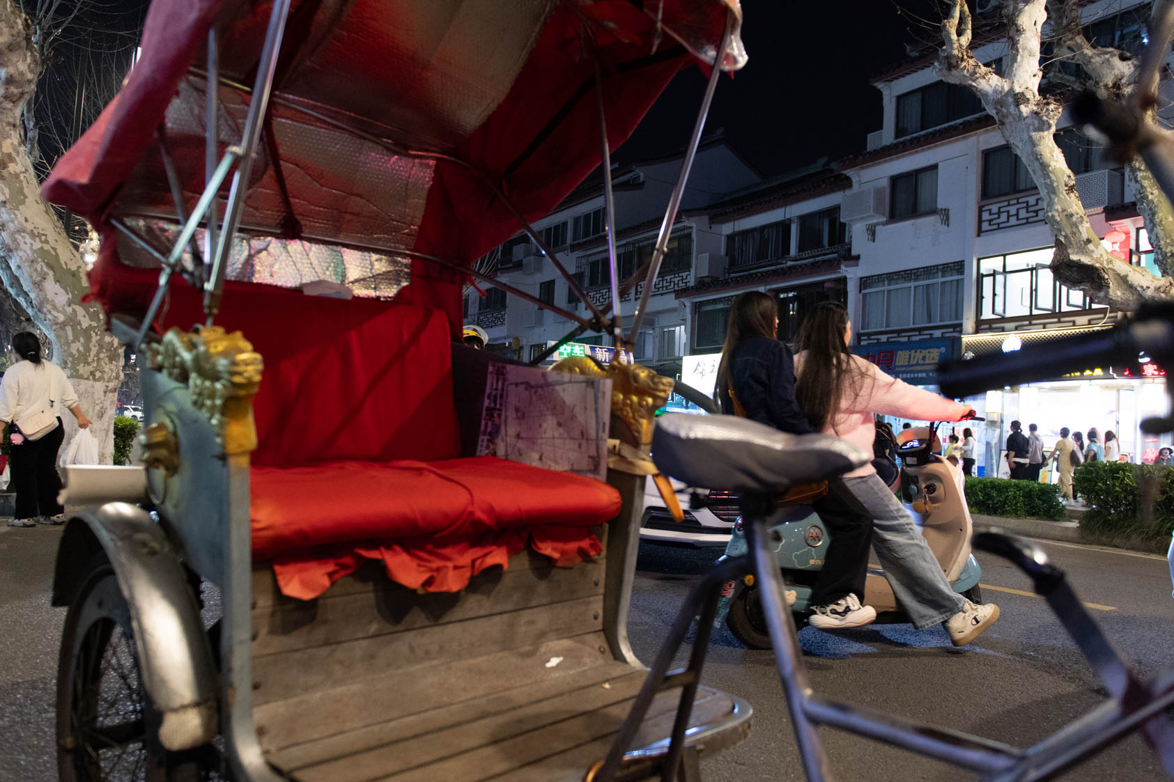 Scooters everywhere, Suzhou Night Market area street.