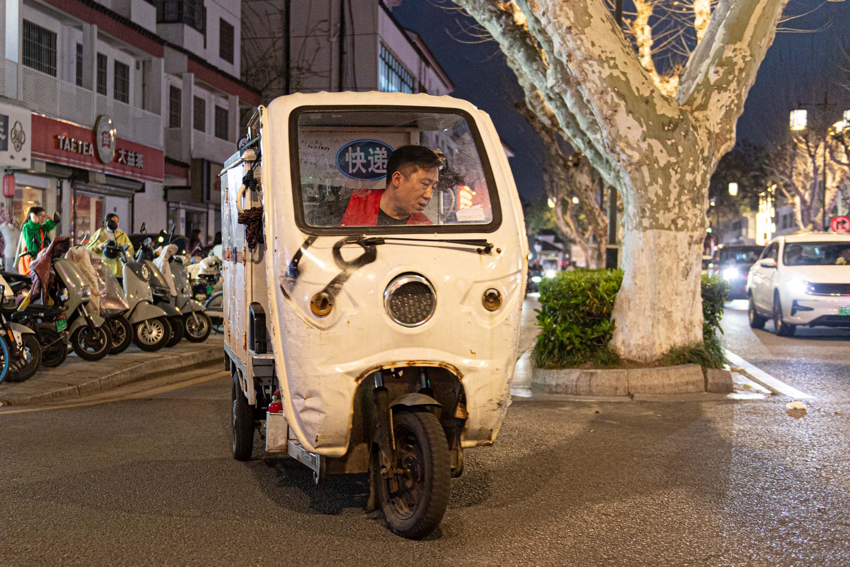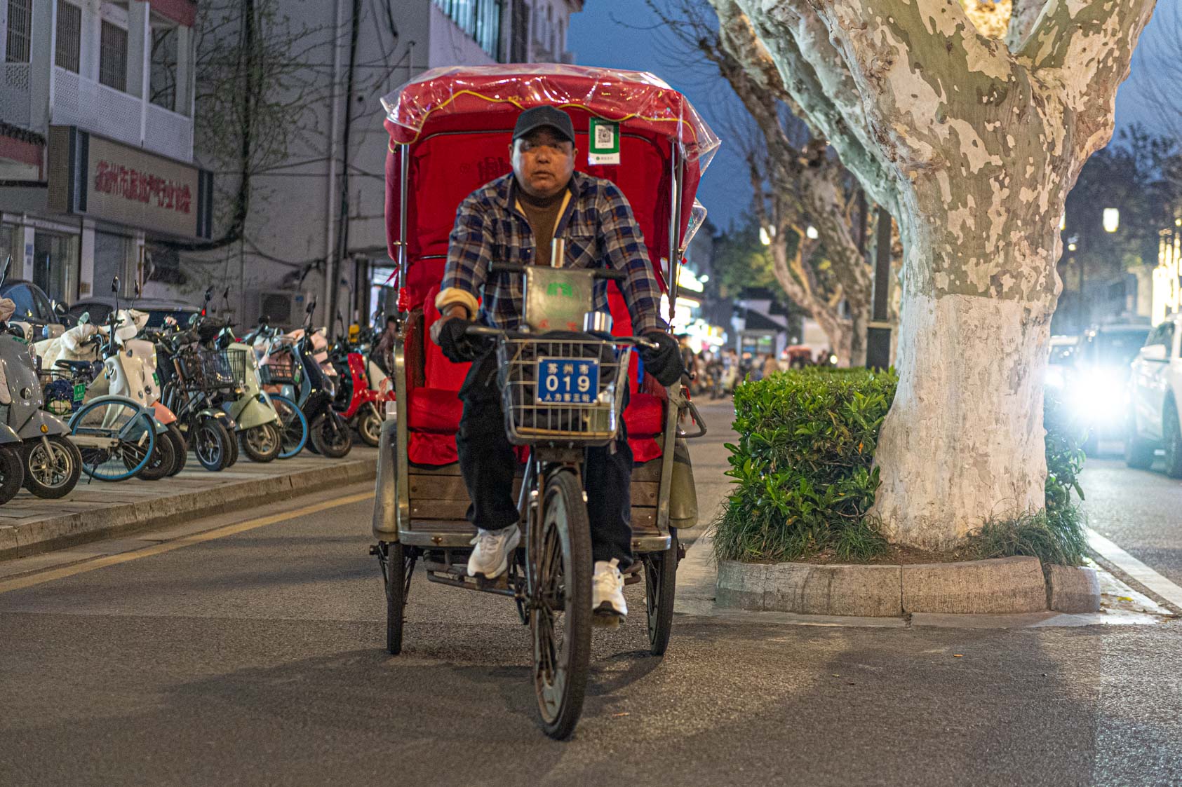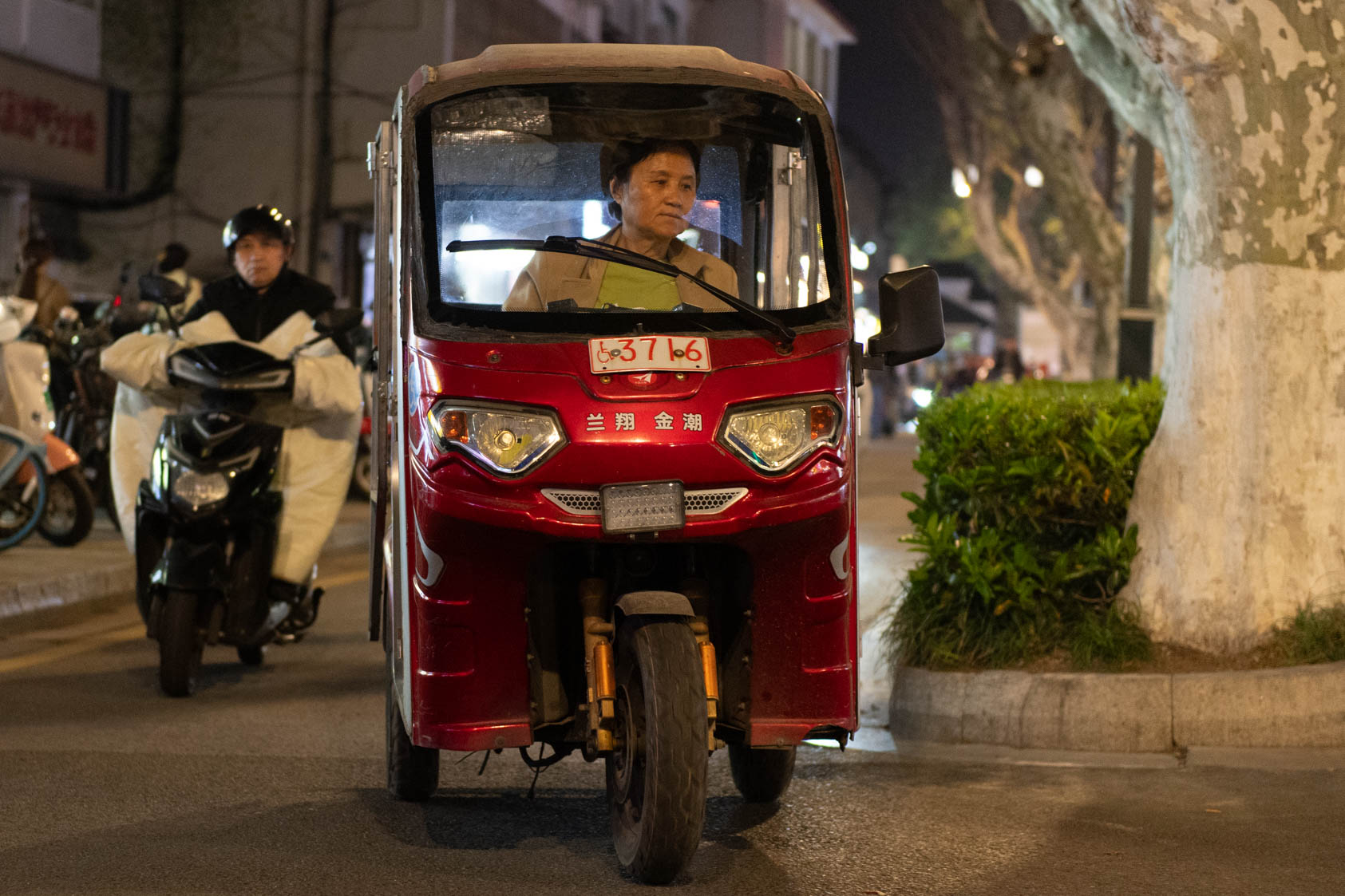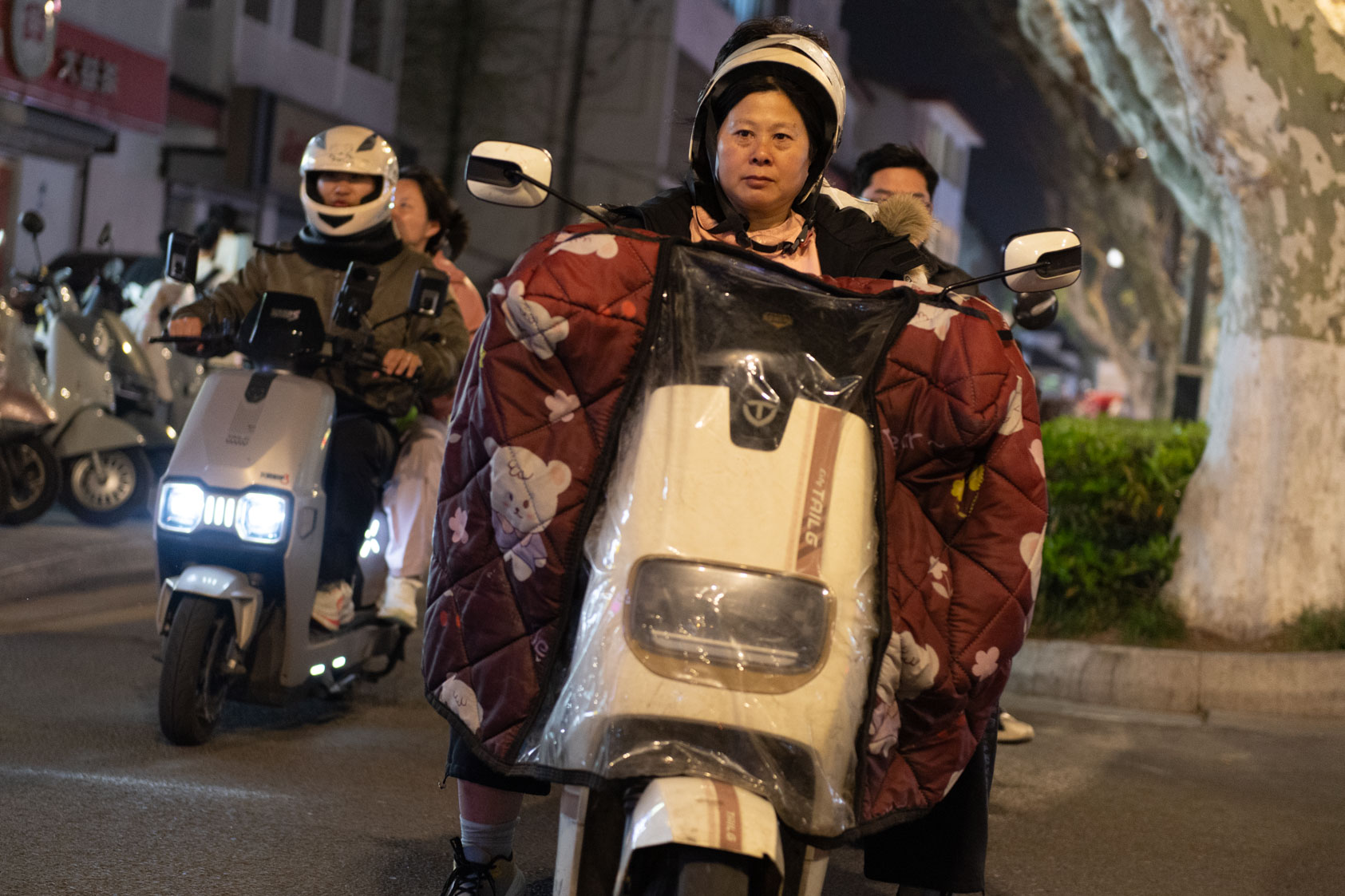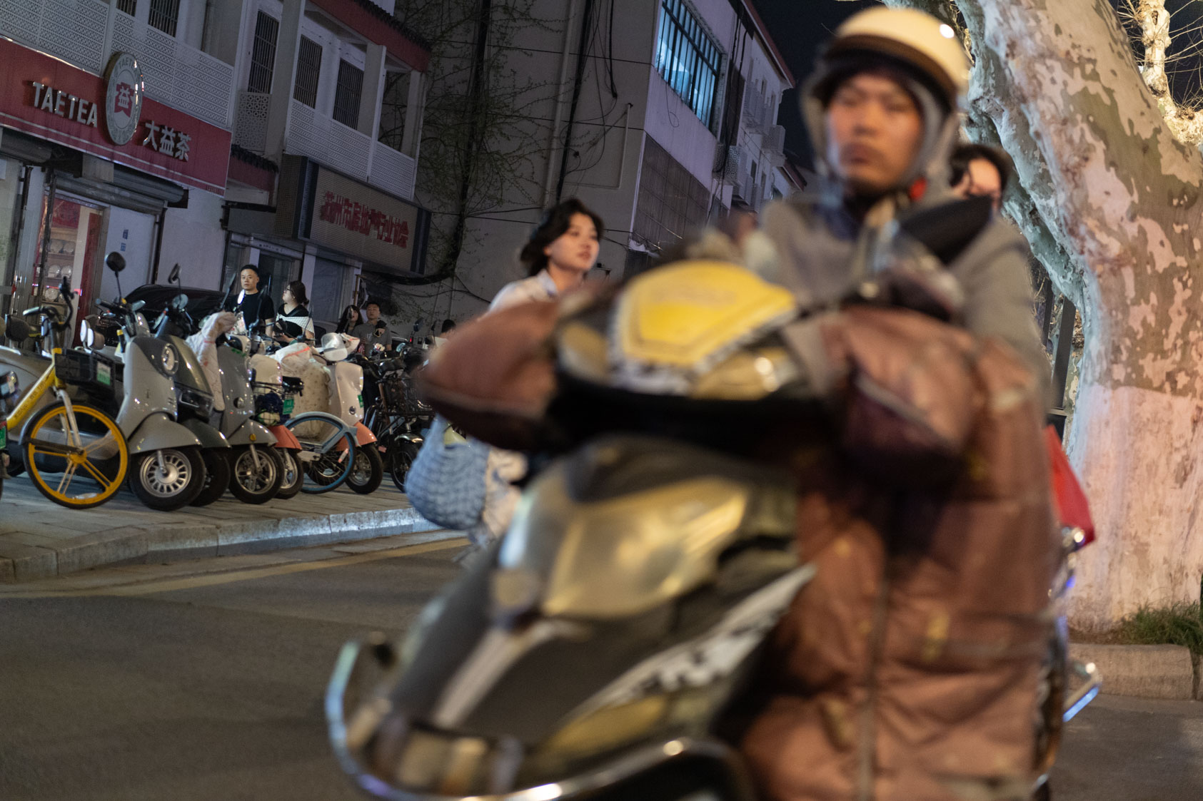 Scooters everywhere, Suzhou Night Market area street.