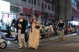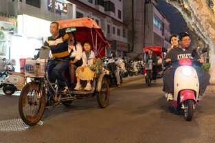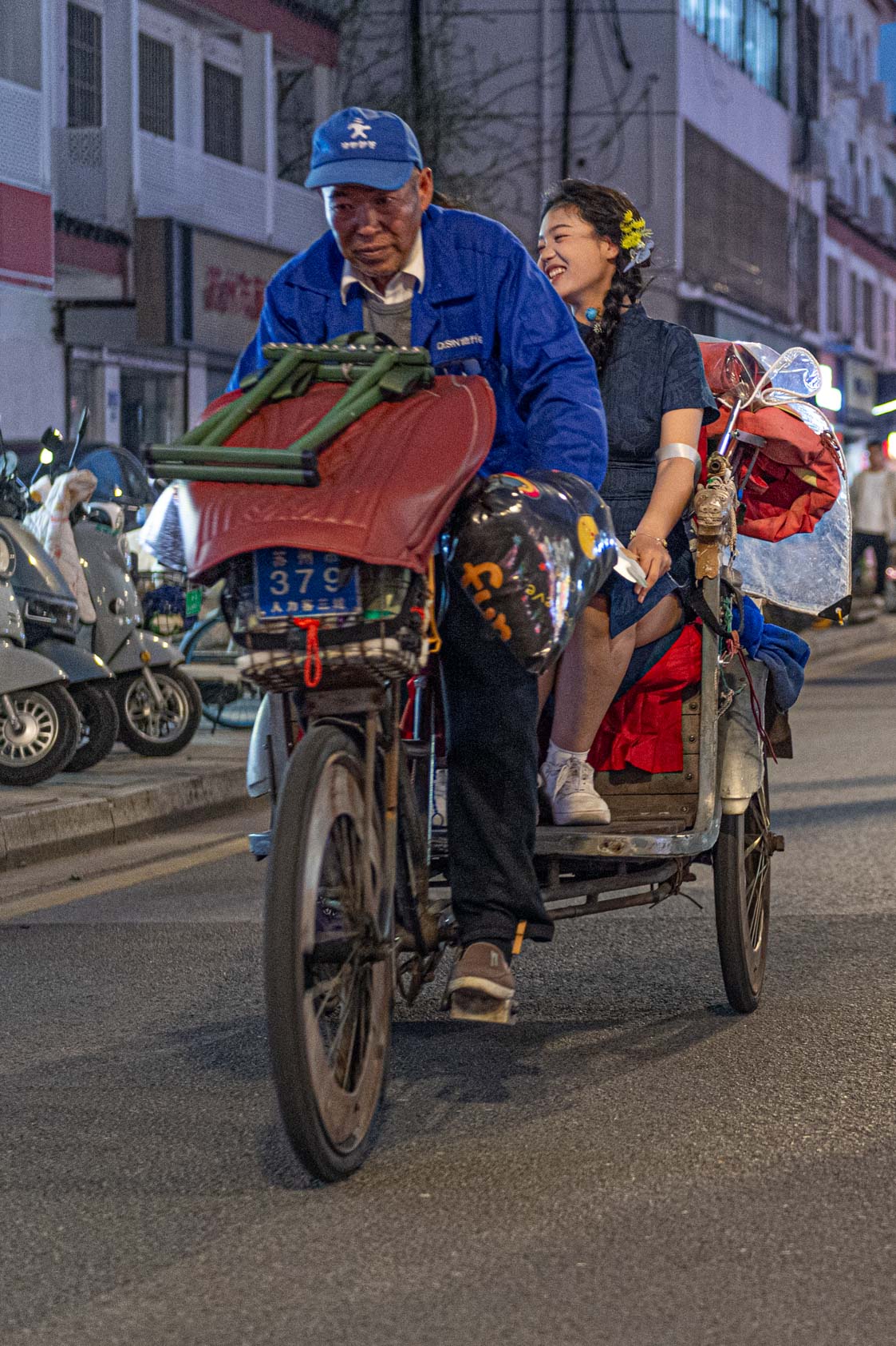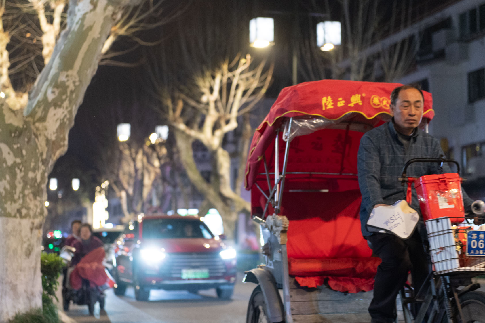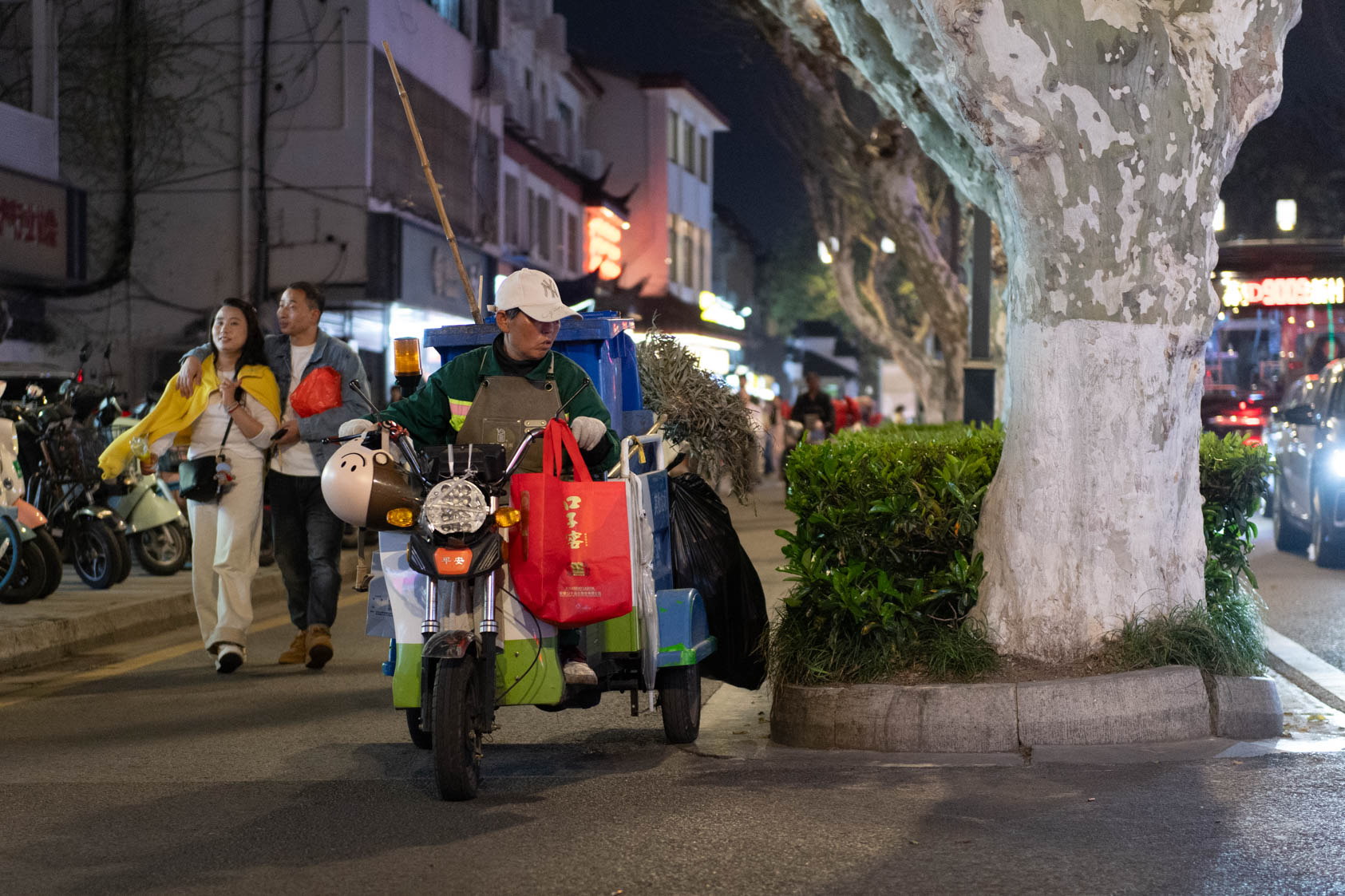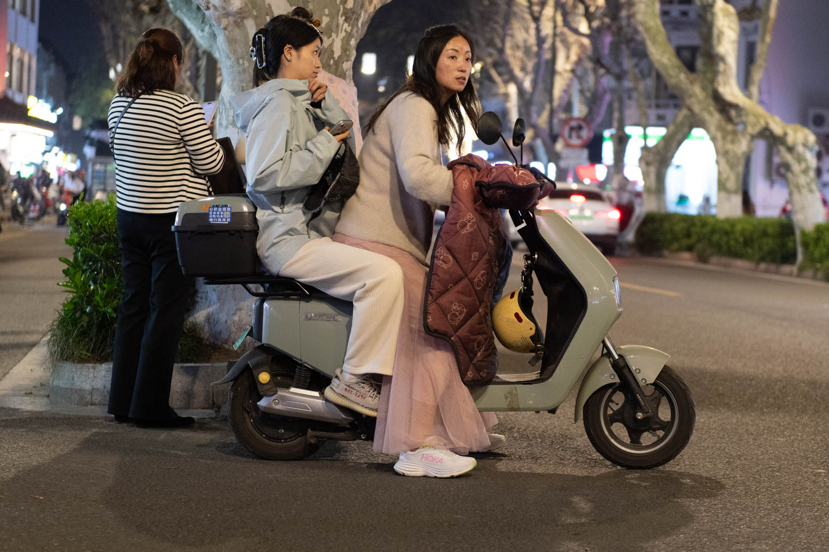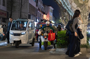 Scooters everywhere, Suzhou Night Market area street.