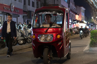 The photographs were mainly of vehicles and pedestrians using the cycle lane established next to the main carriageway. Traffic was predominantly coming towards me, with some joining from an alleyway to the left, more joining from the main road to my right, and traffic darting across right in front of me from the cycle lane into the main road.
